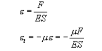 當被測力F沿柱體軸向作用在彈性體上時,其縱向應變和橫向應變分別為