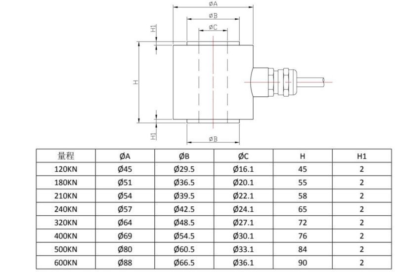 量程 | 120KN~600KN | 輸出電阻 | 700±5Ω |